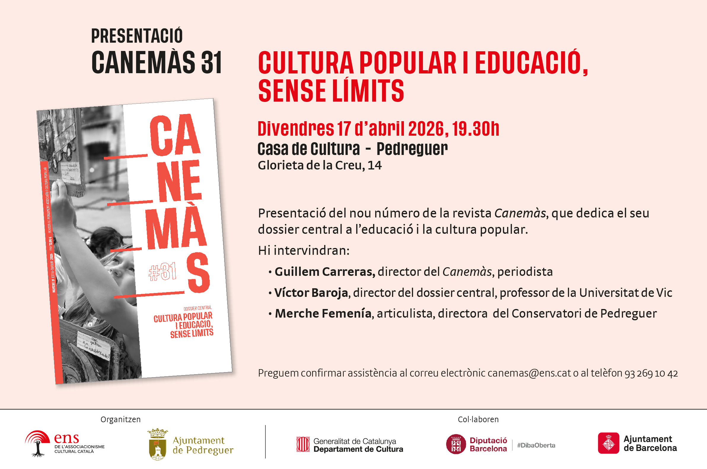 Presentació del nou número de la revista Canemàs, que dedica el seu dossier central a l’educació i la cultura popular. Hi intervindran: