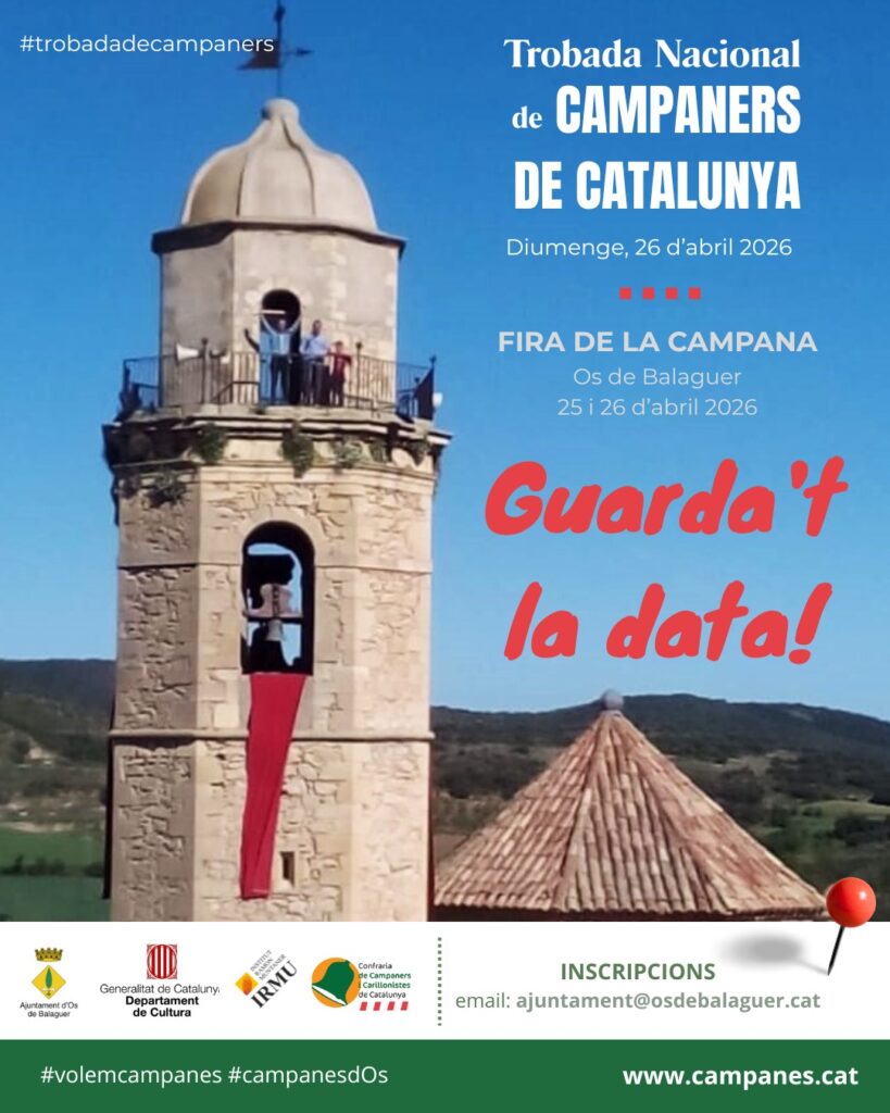 El 26 d’abril, la Trobada Nacional de Campaners de Catalunya aplegarà campaners, estudiosos i persones vinculades a la cultura popular i al patrimoni sonor. El programa oferirà tocs de campanes, activitats divulgatives, espais de convivència i la fira especialitzada.
